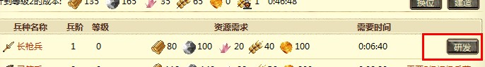 在弹出的界面中,选择一个兵种,点击“研发”,当研发结束后,所选兵种的物理攻击力将得到提升。