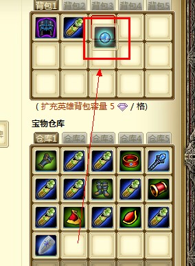 在英雄界面中,将右侧放于宝物仓库中的宝石和您想要升级的物品拿出放置在英雄的背包中。